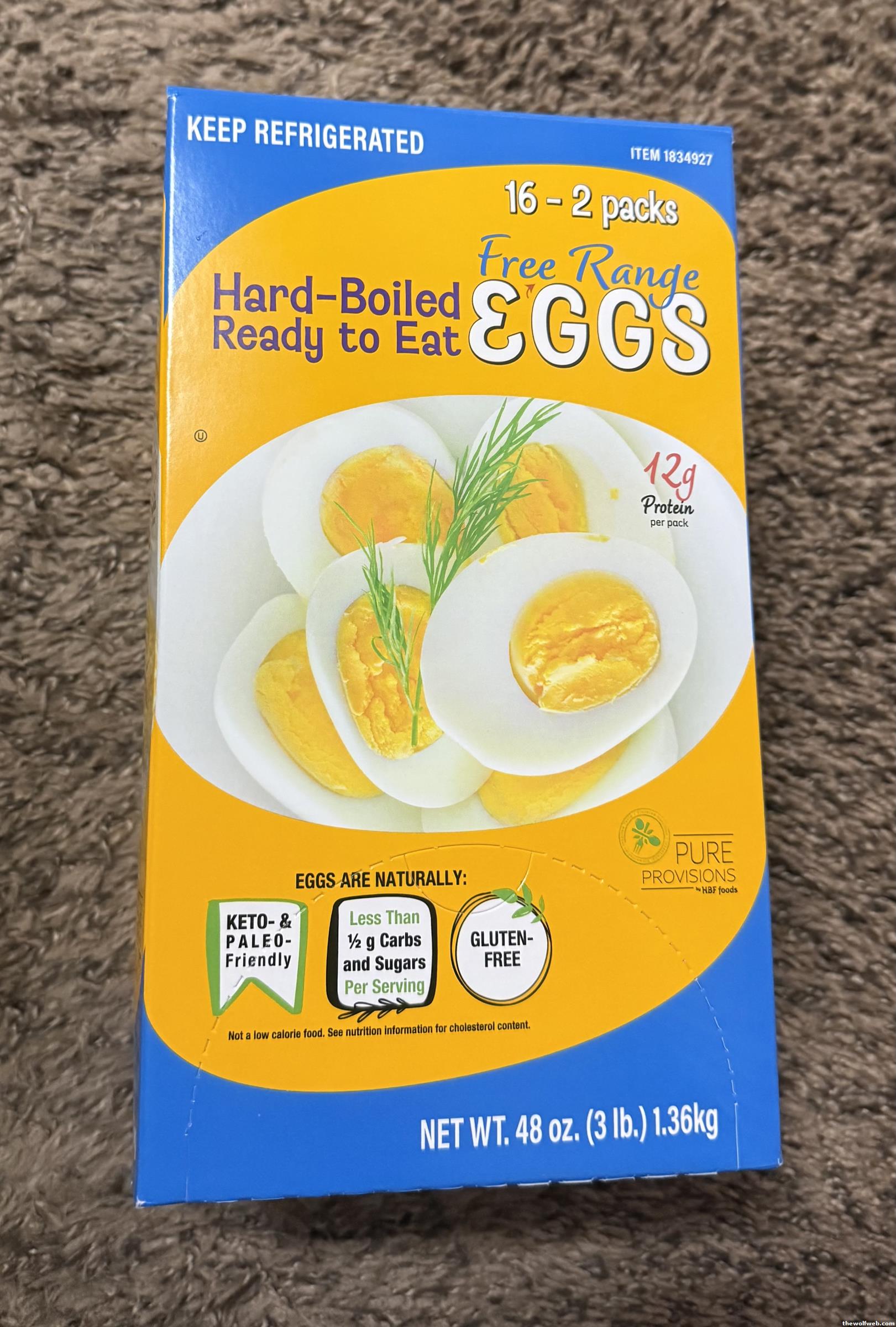 Costco hard boiled eggs are better than the sams eggs, imo. If anyone cares about my expert opinion. Sams all the eggs are like "dented" from resting against each other. Costco eggs also taste better. One of my costco packs had 3 smaller eggs than 2 regular sized eggs