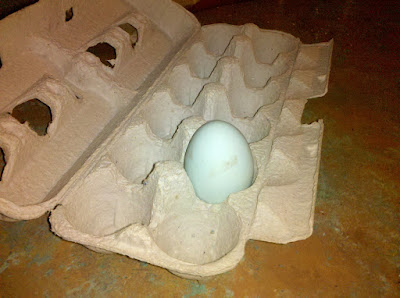 My new chickens just layed some delicious eggiesAnd they're blue!