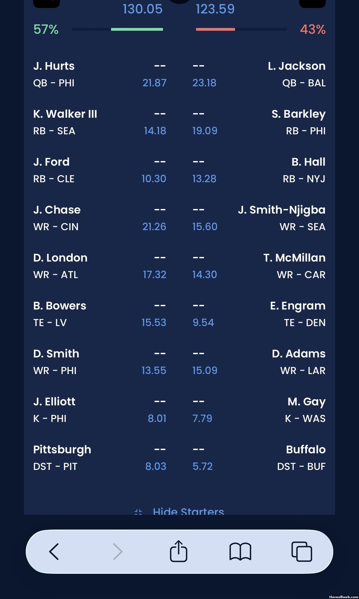 Here is my fantasy team. i was having tech difficulties so someone else drafted for me...but this fantasy pros website said i am the strongest of the 10 teamsSo thankful saquon didn't run in that TD I'm number 1 rank in starters, wr, and te. But RB is 10, bench 9[Edited on September 4, 2025 at 8:53 PM. Reason : Add another stat]