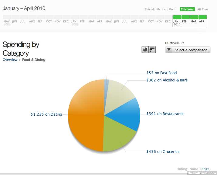 I spend 5 times as much on restaurants and less than 1% of that on dating