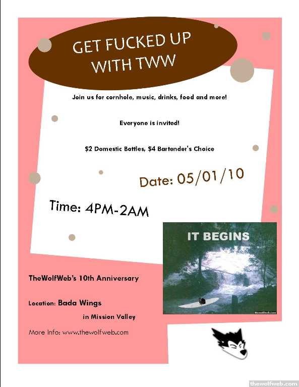 first, fliers are gaysecond, IF we lived in some odd dimension where fliering (sp?) for an internet party wasnt gay, i would say that the get fucked up with tww one wins