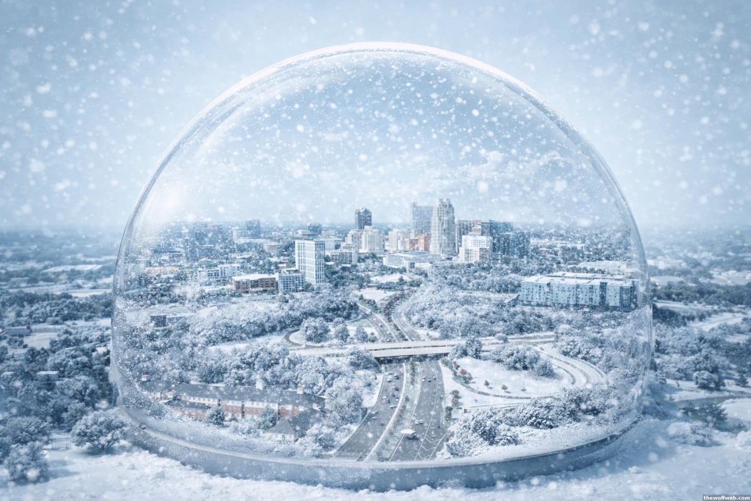Would be a more impactful graphic if there wasn't snow on the ground inside the dome.
