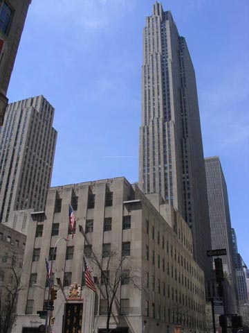 The GE Building in NYC, the focal point of Rockefeller Center. Classic Art Deco. Completed in 1933, it is 850 ft tall.