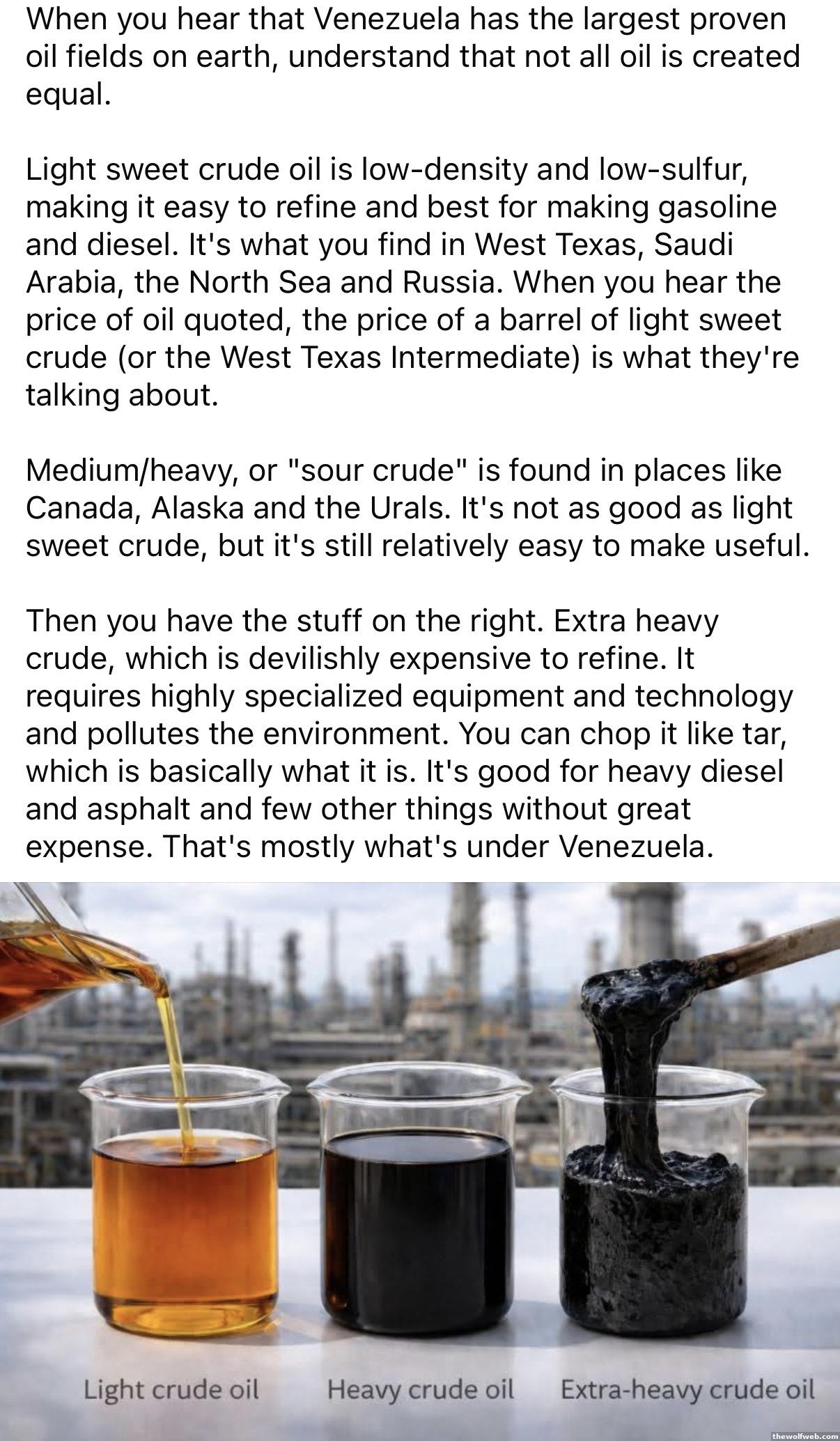 I thought this was interesting. I had always heard how they had oil that was different grade or harder to refine or whatever. But never visually saw the difference.