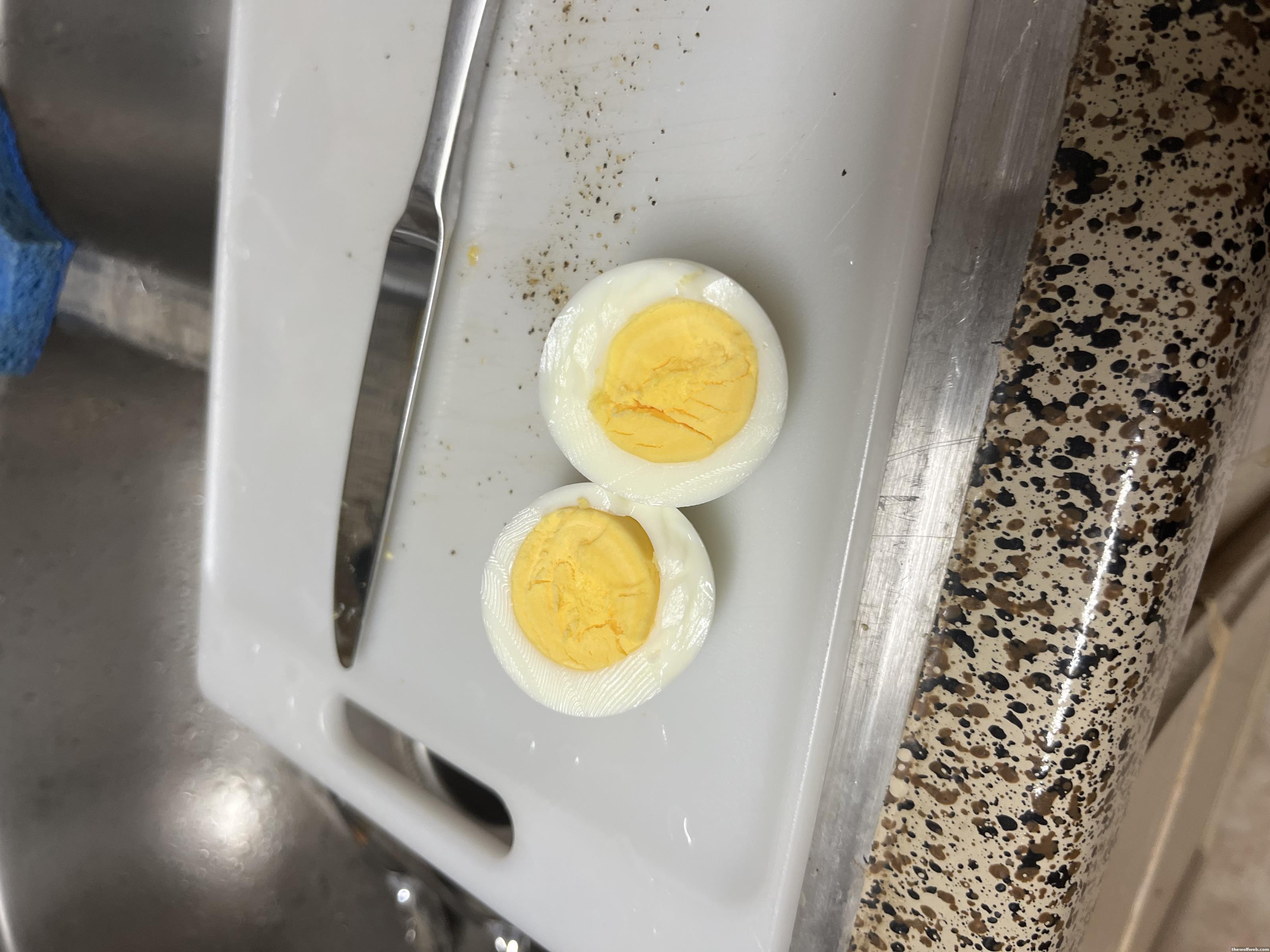 Just tried pinhole in steamer basket for 11 min. least easiest to peel. And i thought dark orange in center was overcooked but mine was dark and still kinda liquidy?Trying pinhole in airfryer now. These are over a week old too saw that listed online several times. Doing ice bath. Going to fine tune this, just getting burned out on eating eggs lolSo far waiting for boil and then turn off, remove from burner, let sit another 15 min method winswant to try that dash egg gizmo. Maybe goodwill has oneAre these undercooked? Outside of the very first one, all have 2 toned centers. And this was with less time...Chatgpt said "perfectly cooked"[Edited on October 15, 2025 at 4:01 PM. Reason : Gpt]