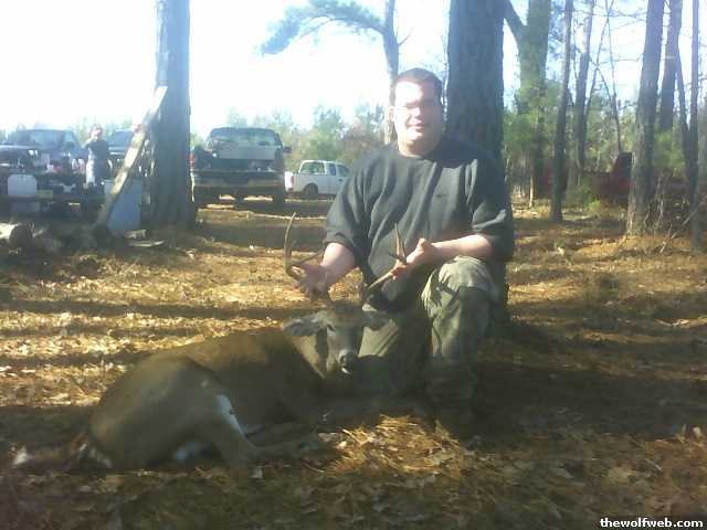 finally got the picturesthis was the first buck bigger than a 5 pt that I've killedits really tall, but not too much mass.. I'm very happy tho You can't really tell by the pic, but its an 8 point, nice symmetry... left tine is taller