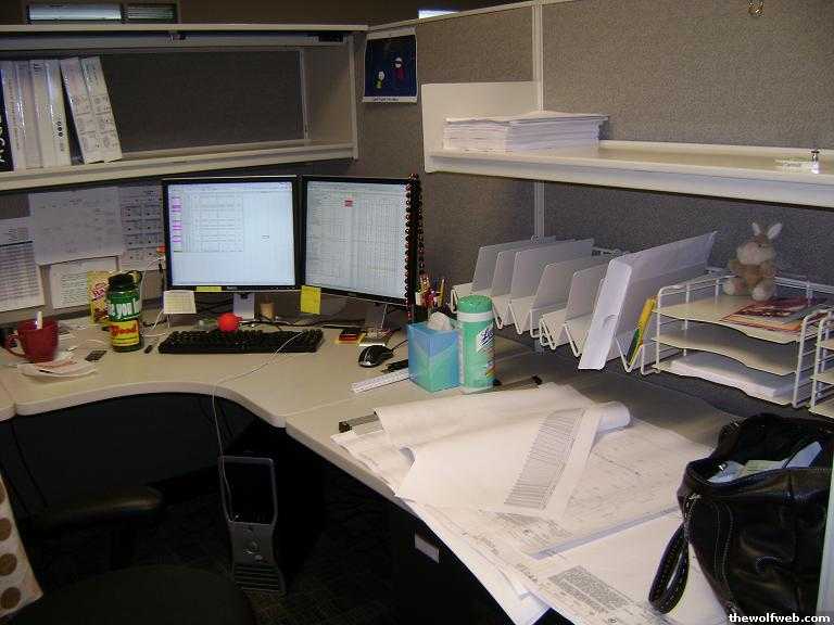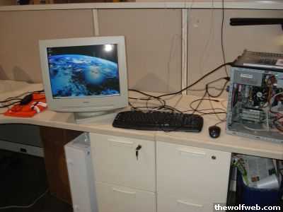 Dammit. My cube/area is so damn lame compared to you guys' offices. I'll try a pic when I go back to work tonight.