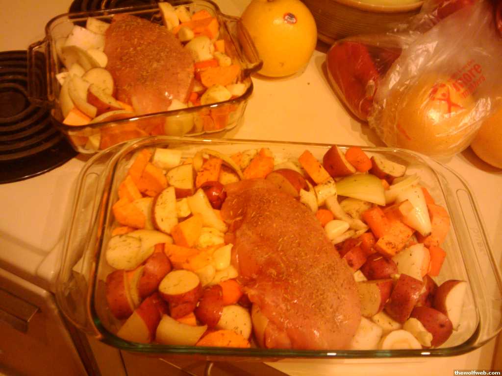 tonight's dinner is as easy at it getsgonna put on a nice red wine reduction tooits seriously, shopchopthrow some olive oil and herbsroasteatthats what i dont get.. you can cook good meals and it be very very easyand yet, so many poeple get their dinners from the microwave [Edited on January 30, 2010 at 5:23 PM. Reason : e]