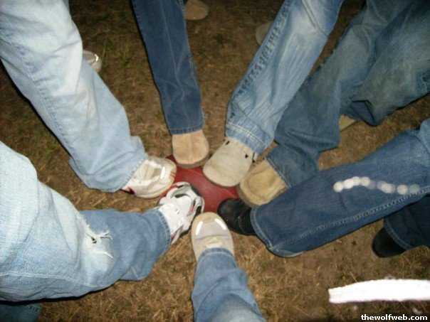 This is a picture with some of my friends and me...guys included...but we were all drunk and thought it looked cool