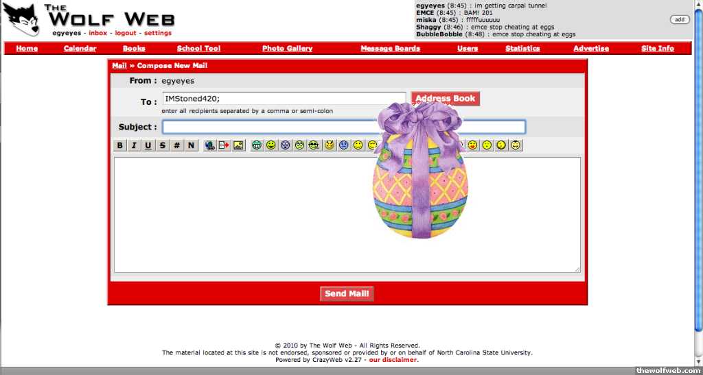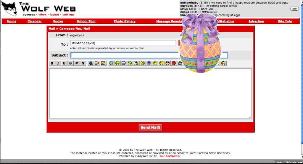 actually, i will pm you if you will tell how to accept two eggs that show up on the same page. i am finally getting at losing them to that.[Edited on April 1, 2010 at 8:08 PM. Reason : ]