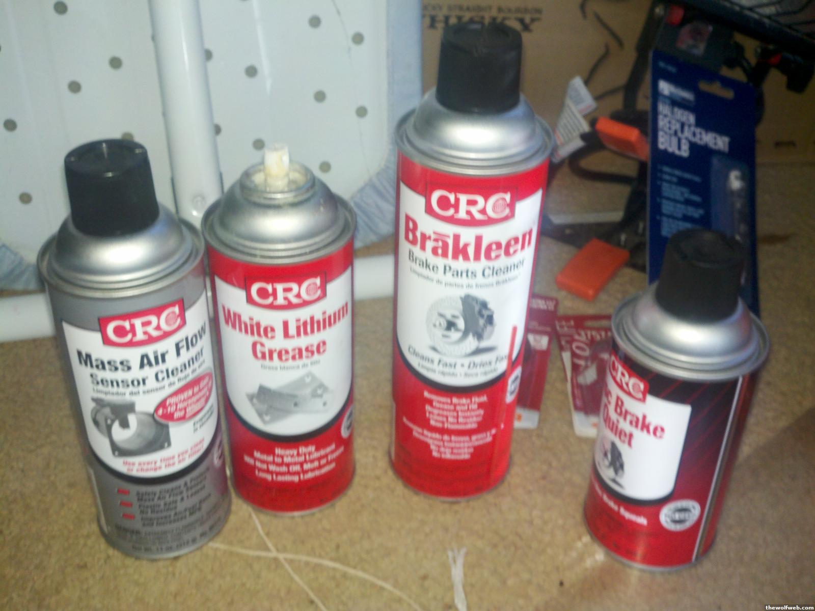 1. 2.5 ton Big Red trolley hydraulic jack (pic)2. 2 x 3 ton Big Red jack stands (3 ton total capacity) (pic)3. 2 x 1 ton ramps (2 ton total capacity) (pic)4. Halogen work lamp + extra bulb (pic)5. Oil change pan + funnel (pic)6.-7. Havoline anti-freeze (<1/2 bottle remaining) Castrol GTX 5W-30 oil (probably 1-2 quarts remaining)(pic)8. Gojo (probably 90-95% remaining) (pic)9.-12. CRC: MAF cleaner, White lithium greese, brake cleaner, disc brake quiet (>90% remaining in each) (pic)13. Sylvania auto bulbs: 3147NA/4157NA & 3757A (pic)Believe that's all I got for now.]